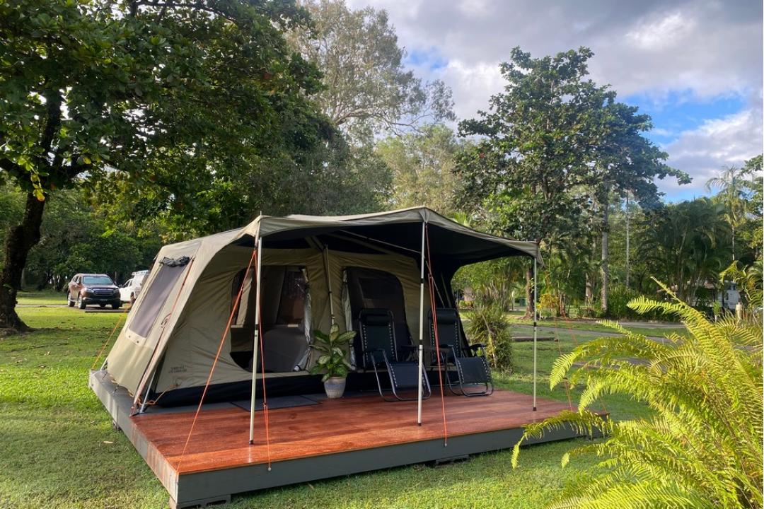 Tent Accommodation - basic camping tent with full queen size bed and base.