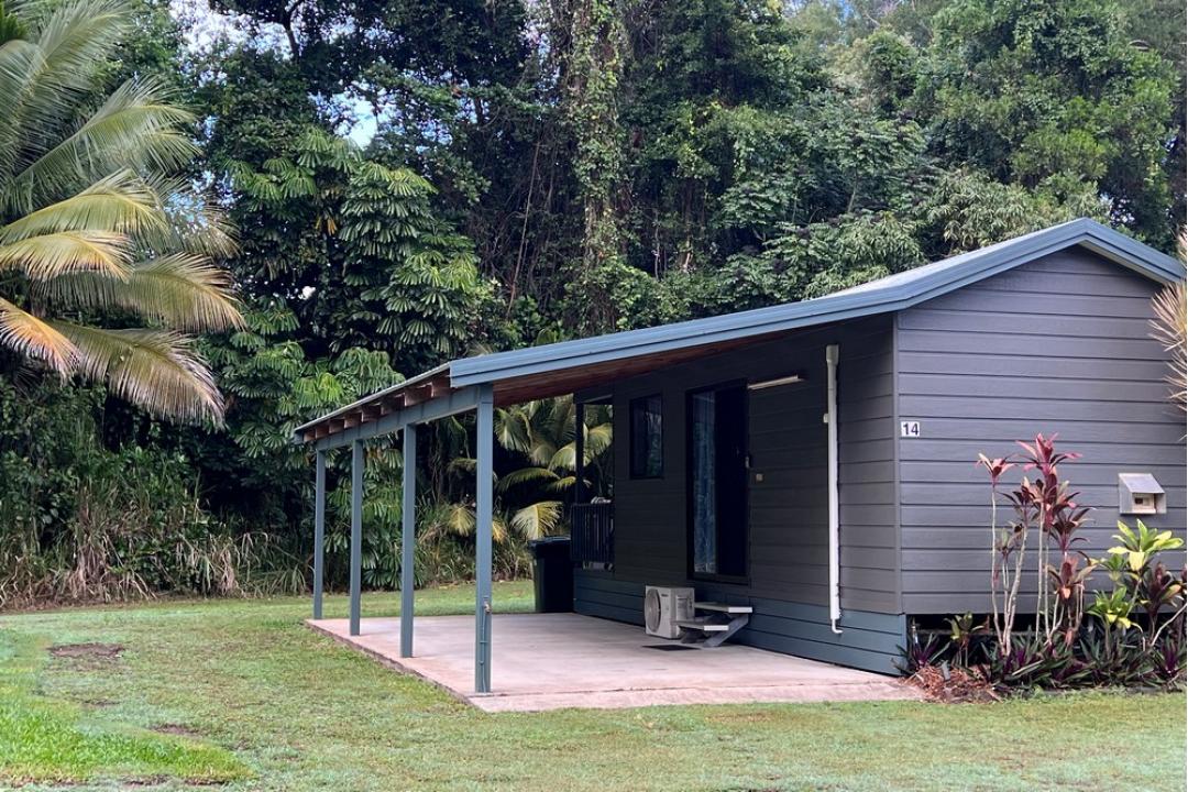 The cabins at Daintree Beach Resort are ideal for couples and small families, accommodating up to four people.
